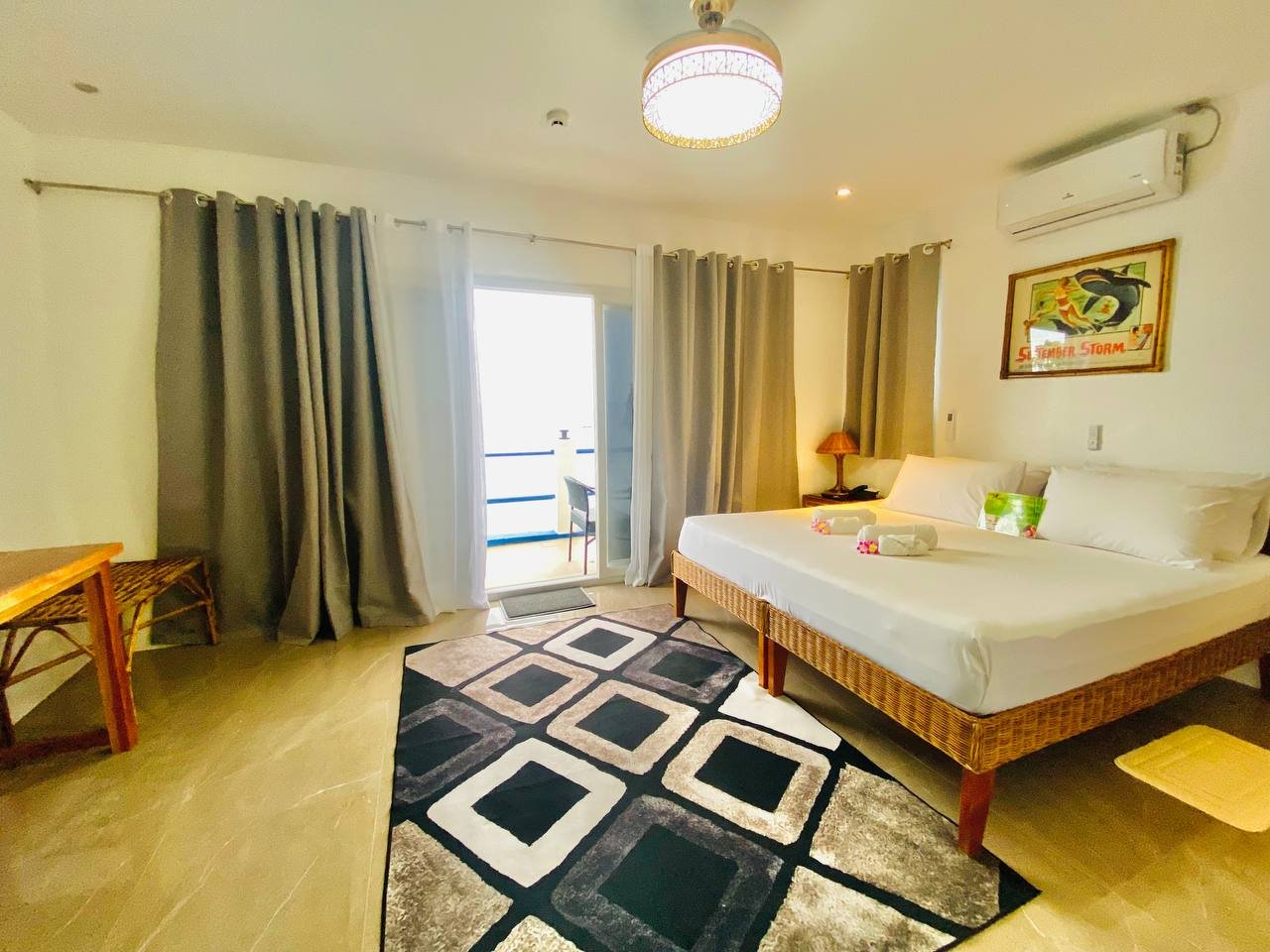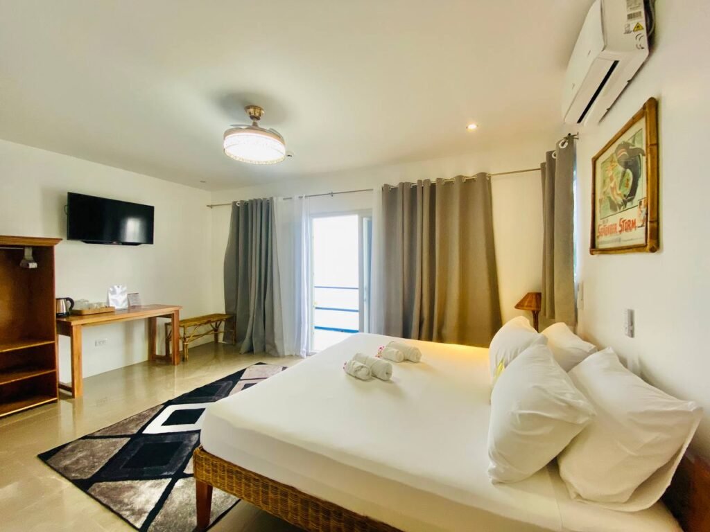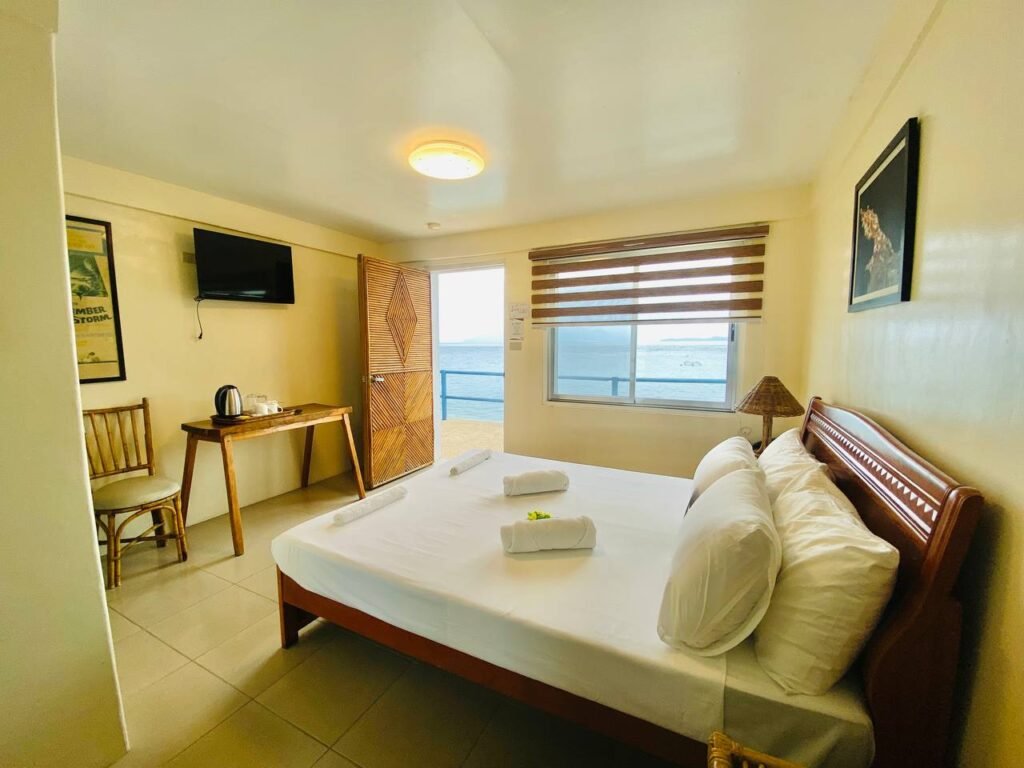 Our Oceanfront Rooms have a twin or double bed configuration with comfortable mattresses . All rooms have split-type air-conditioning, refrigerator with mini-bar drinks and snacks, hot-water showers, Flatscreen TV, safety deposit box, tea and coffee making facilities, and a phone to contact Front Desk.