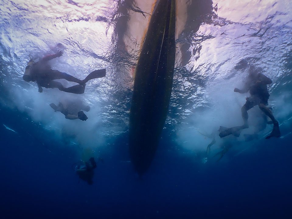 We have two large covered outrigger boats and two covered speedboats for diving operations. The boats are designed for easy back-roll entry, and gear removal before exiting the water. All boats are equipped with first aid kits, oxygen and spare dive equipment.