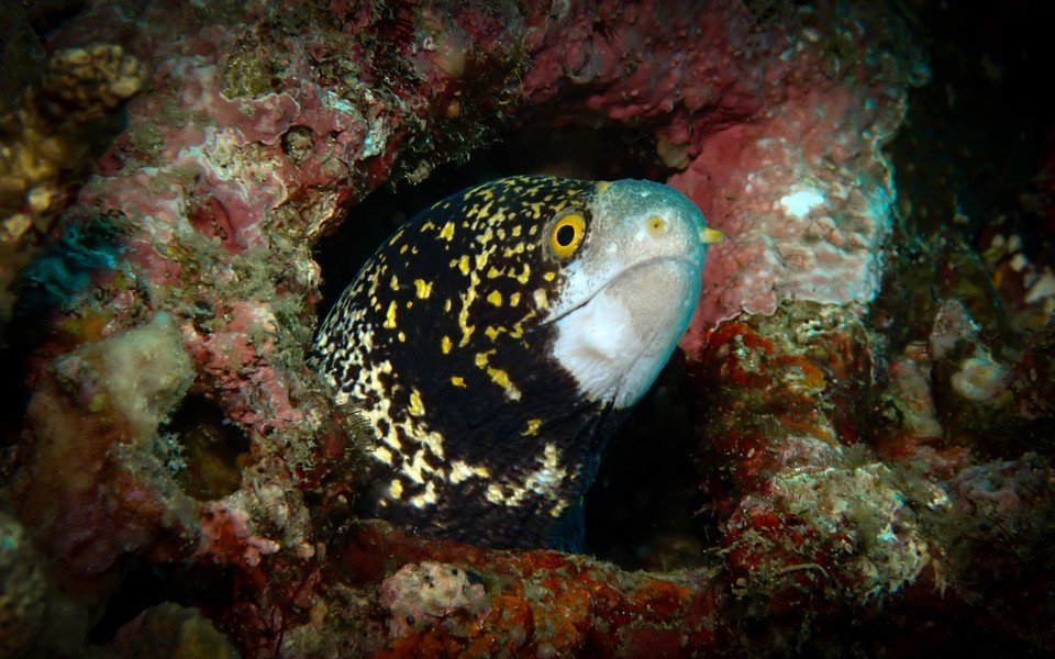 The morning is spent exploring "The Drop -Off" - one of the Philippines most famous dive sites. The area is home to an astounding quantity of tiny Orange Anthias that feed in the nutrient rich currents. Diving along the wall, keep your eyes peeled for Giant Frog Fish, Eels of all varieties, Nudibranchs of every size shape and colur, and witness the soft Xenia Corals filtering the water for drifting plankton.